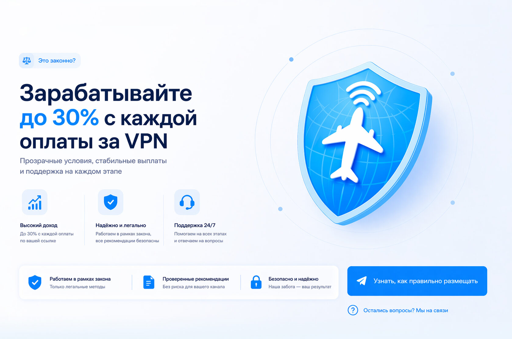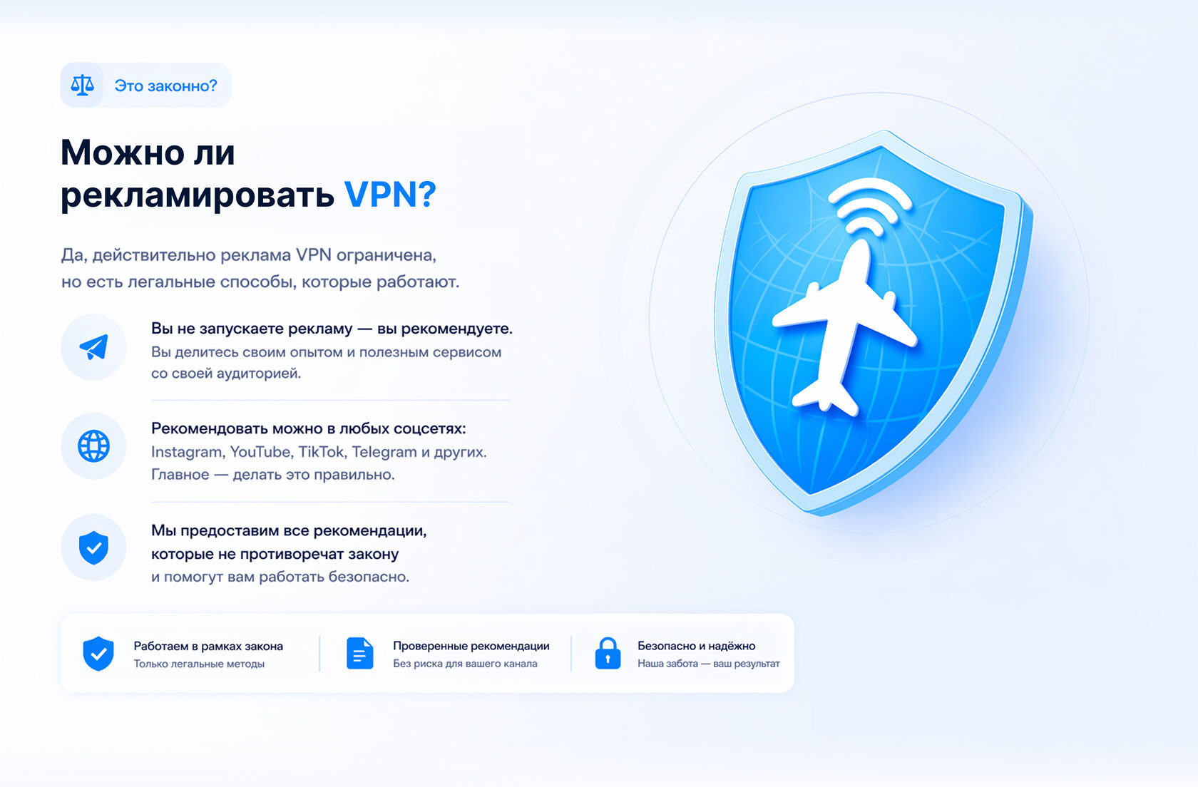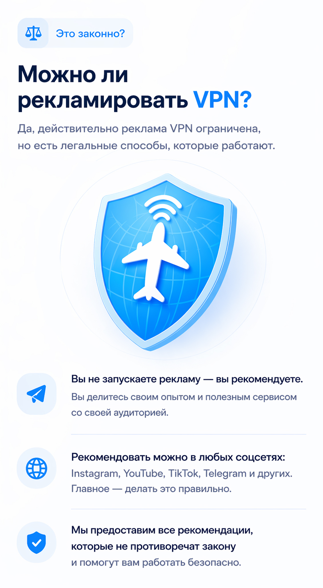 Прямая реклама VPN может быть ограничена, но вы не запускаете рекламу, а делаете рекомендации в своём контенте.